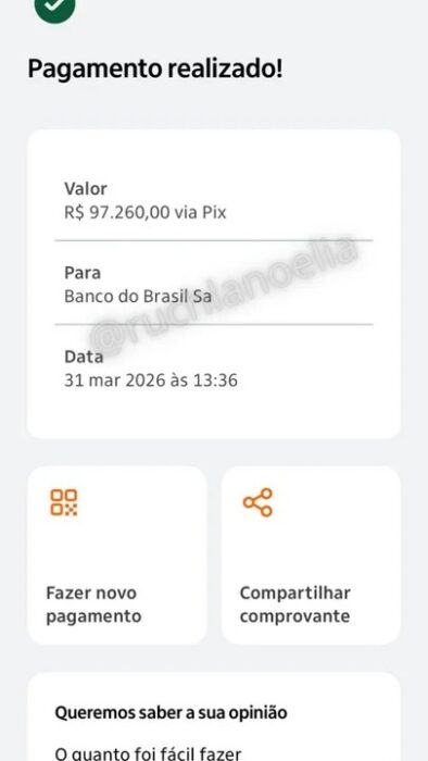 La letrada abonó la suma de 97.260 reales (casi $26 millones), tras esperar más de una semana el fallo definitivo del Tribunal de Justicia de Río de Janeiro.