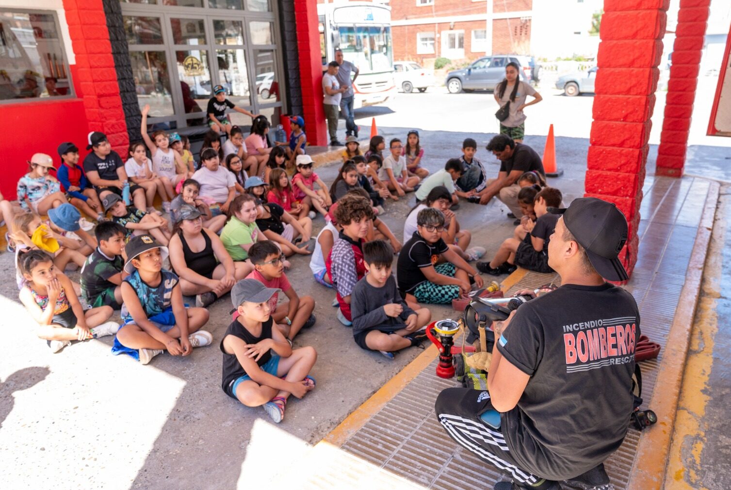 Como parte de las distintas propuestas que se desarrollan en el marco de las Colonias de Verano 2026, más de 80 niños y niñas de la Sede Huergo aprendieron acerca de las actividades que desarrollan los Bomberos en nuestra ciudad.