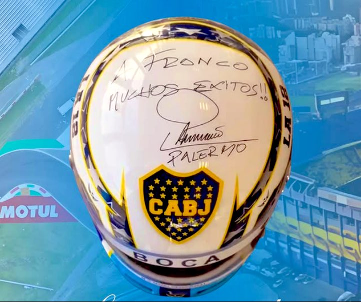 “Mi primer deseo fue homenajearlo a Franco con un casco de Boca, el club que él es fanático”, explicó en redes sociales y en ese proceso, decidió sumar a una leyenda del club: “Me aparece Martín Palermo como el máximo goleador y el referente máximo del club”.