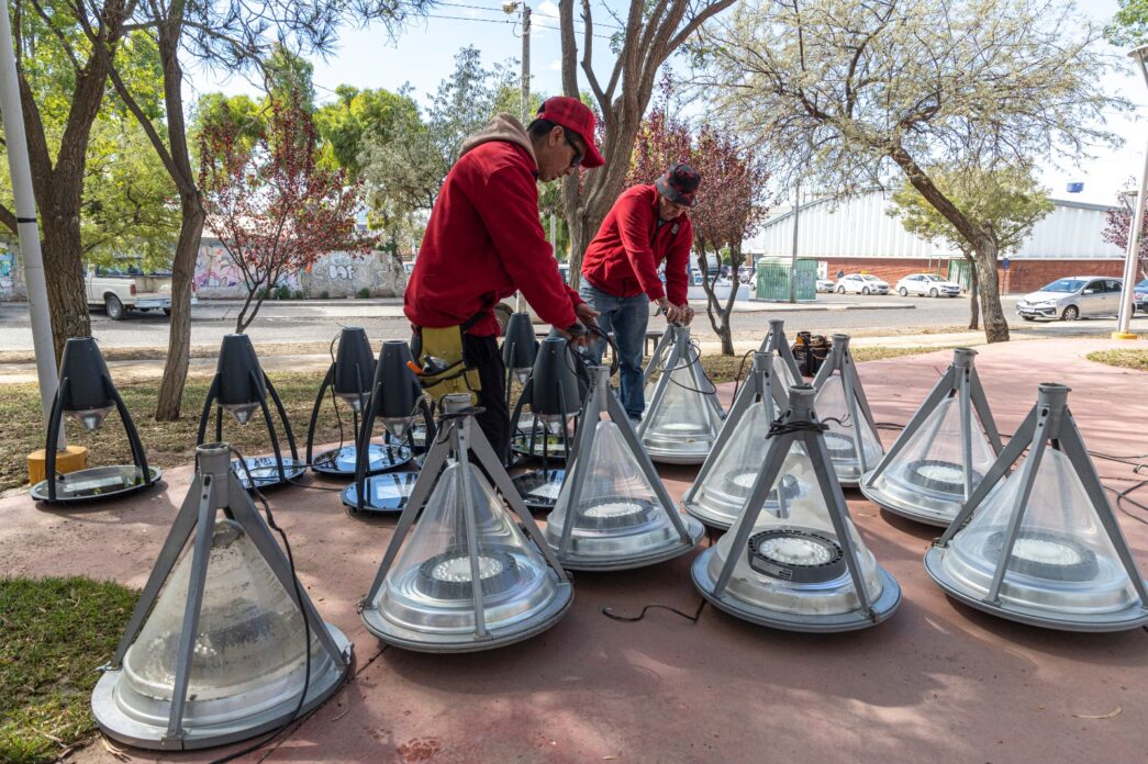 El Municipio avanza con el recambio de luminarias en la Plaza Carlos Gardel