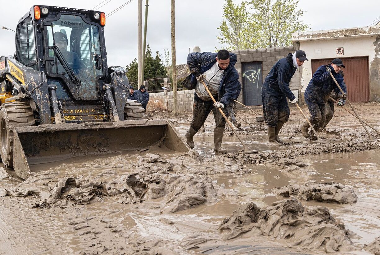 El objetivo de esta labor intensiva es recuperar la circulación vehicular y que los comodorenses retomen sus actividades habituales, luego de un temporal que, en 36 horas, dejó un saldo de agua acumulada que equivale a la mitad del promedio anual que registra Comodoro Rivadavia.