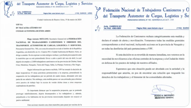 Hugo Moyano, en su rol de secretario general de la Federación de Camioneros, envió una carta a los directivos de YPF expresando “su más enérgico rechazo y preocupación ante la maniobra que se esta pretendiendo llevar a cabo a partir del mes de abril, la cual advierte que dejaría sin empleo a más de 2.000 trabajadores camioneros en nueve provincias del país”.