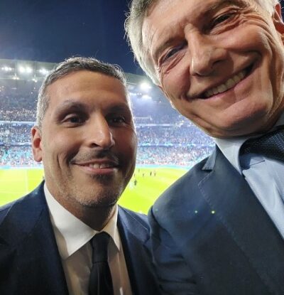 miércoles, 17 de mayo de 2023 - 8:19En su rol de presidente de la Fundación FIFA, Mauricio Macri disfrutó del triunfo del Manchester City ante el Real Madrid en el palco oficial junto a las autoridades del club inglés. Las fotos se compartieron en las redes la que comparte con Pepe Guardiola se viralizó rápidamente entre los usuarios. En otra de las imágenes se lo pudo ver con Khaldoon Al Mubarak, presidente del club inglés.