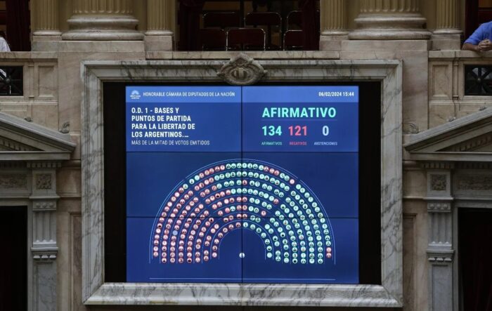 La Cámara de Diputados aprobó por 134 votos afirmativos a 121 negativos la declaración de emergencia en materia económica, financiera, de seguridad, tarifaria, energética y administrativa. Se trata del artículo N°1 del megaproyecto enviado por el presidente Javier Milei.