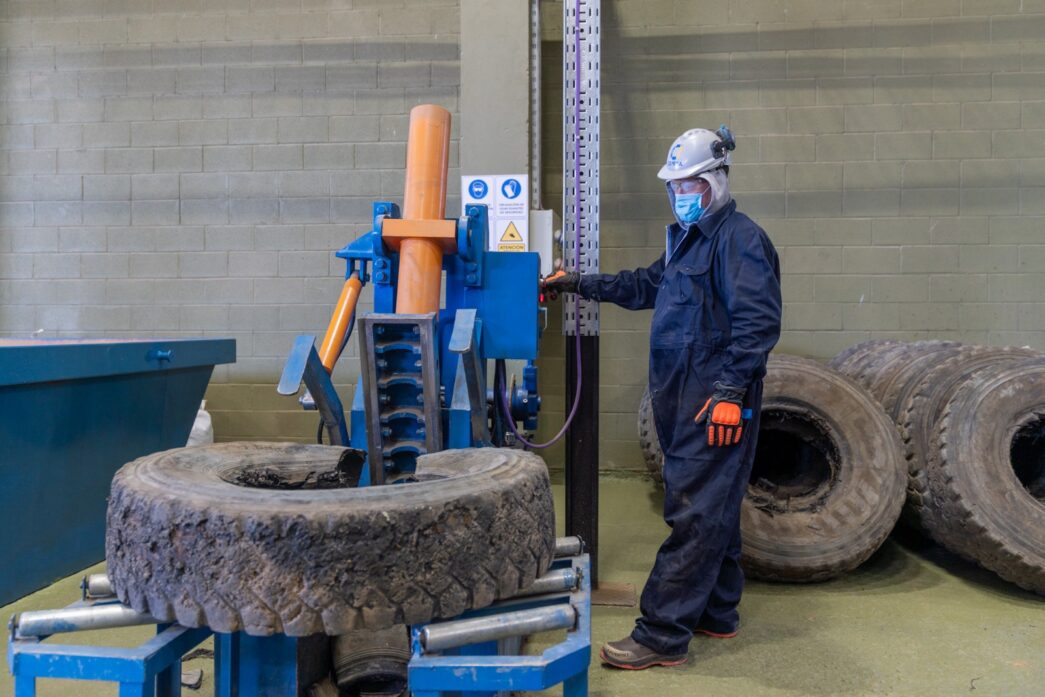 “Estos neumáticos pasan por distintos procesos hasta llegar a la goma netamente limpia, que queda en granos de entre 2 y 4 milímetros; esto puede tener diferentes usos, uno de ellos es la fabricación de losetas antigolpes”, dijo el gerente de la firma, al agregar que se pueden procesar unos 200 neumáticos por día y generar 200 losetas de 50 metros cuadrados por cada turno de 12 horas.