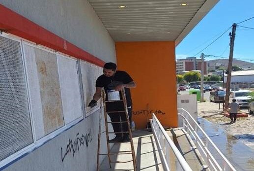 Además, avanza la refacción de habitaciones y cielorrasos en el Albergue Estudiantil de Trelew. En Puerto Madryn, se está interviniendo en el cielorraso y la membrana del techo que fue vandalizada en la Escuela Nº219.