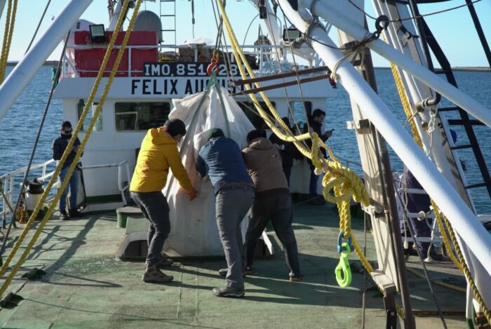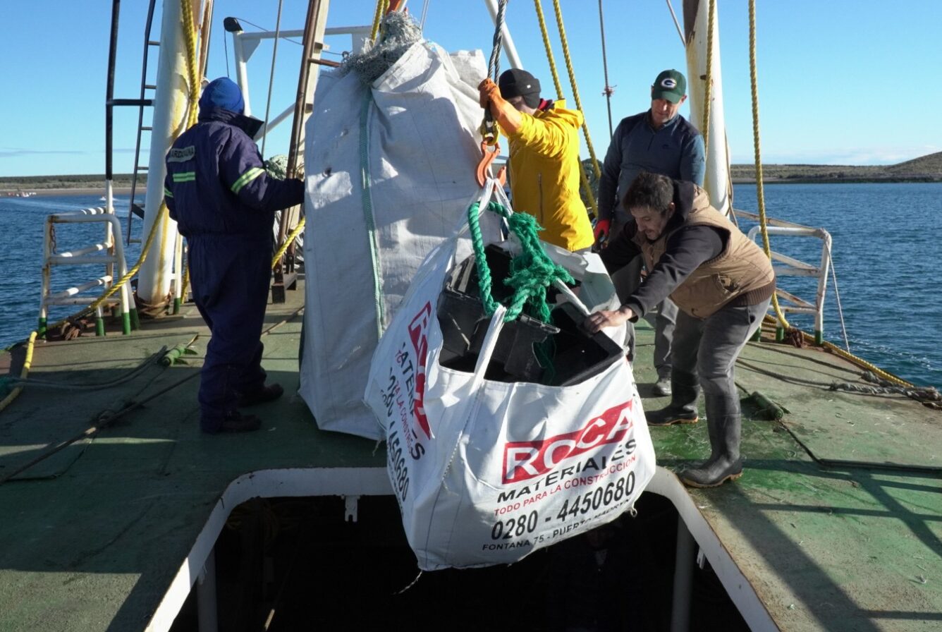 Bravo detalló que “son cuatro las embarcaciones que transportaron los bolsones hasta el barco de Conarpesa, que colaboró en esta tarea tan importante. La actividad finalizará mañana cuando carguemos los bolsones de residuos en los camiones que nos están esperando en el Puerto de Camarones”.