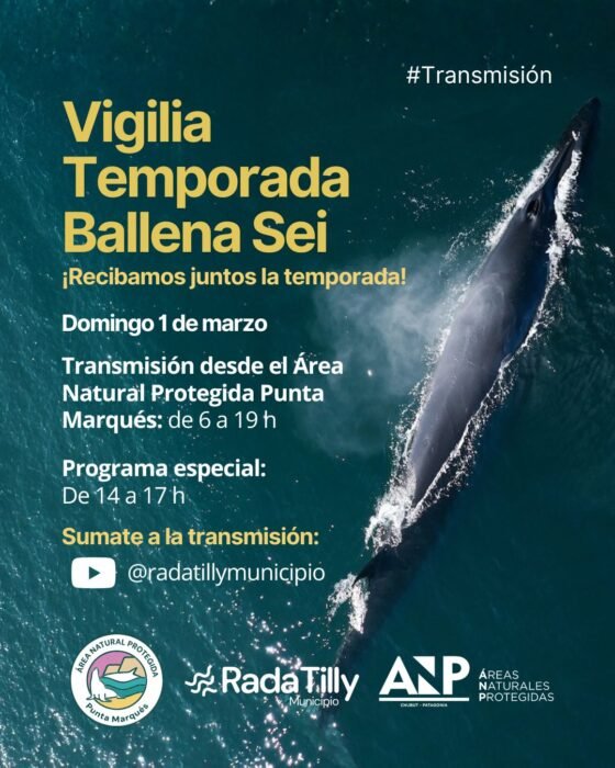 La ciudad de Rada Tilly dará inicio oficial a la Temporada 2026 de Avistaje de Ballena Sei este domingo 1 de marzo con una vigilia desde el Área Natural Protegida Punta Marqués, en lo que será una jornada especial para celebrar la llegada de la especie a las aguas del Golfo San Jorge.