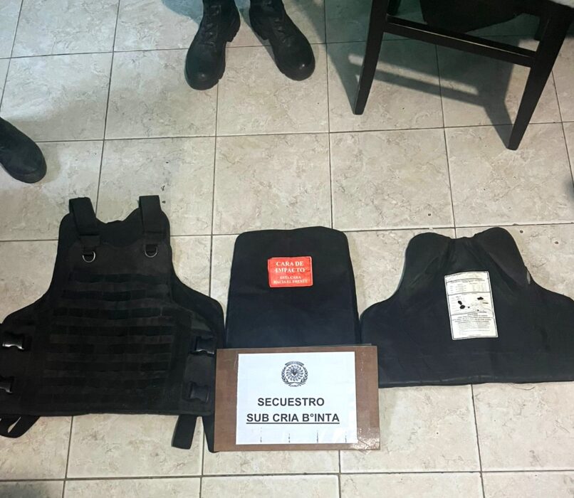 Como resultado de las diligencias judiciales realizadas, se procedió al secuestro de un arma de fuego tipo revólver calibre 38, un revólver calibre 22, un chaleco antibalas, municiones de distintos calibres, un equipo de comunicación tipo Handy con dos bases y cargador, y seis plantas de marihuana.