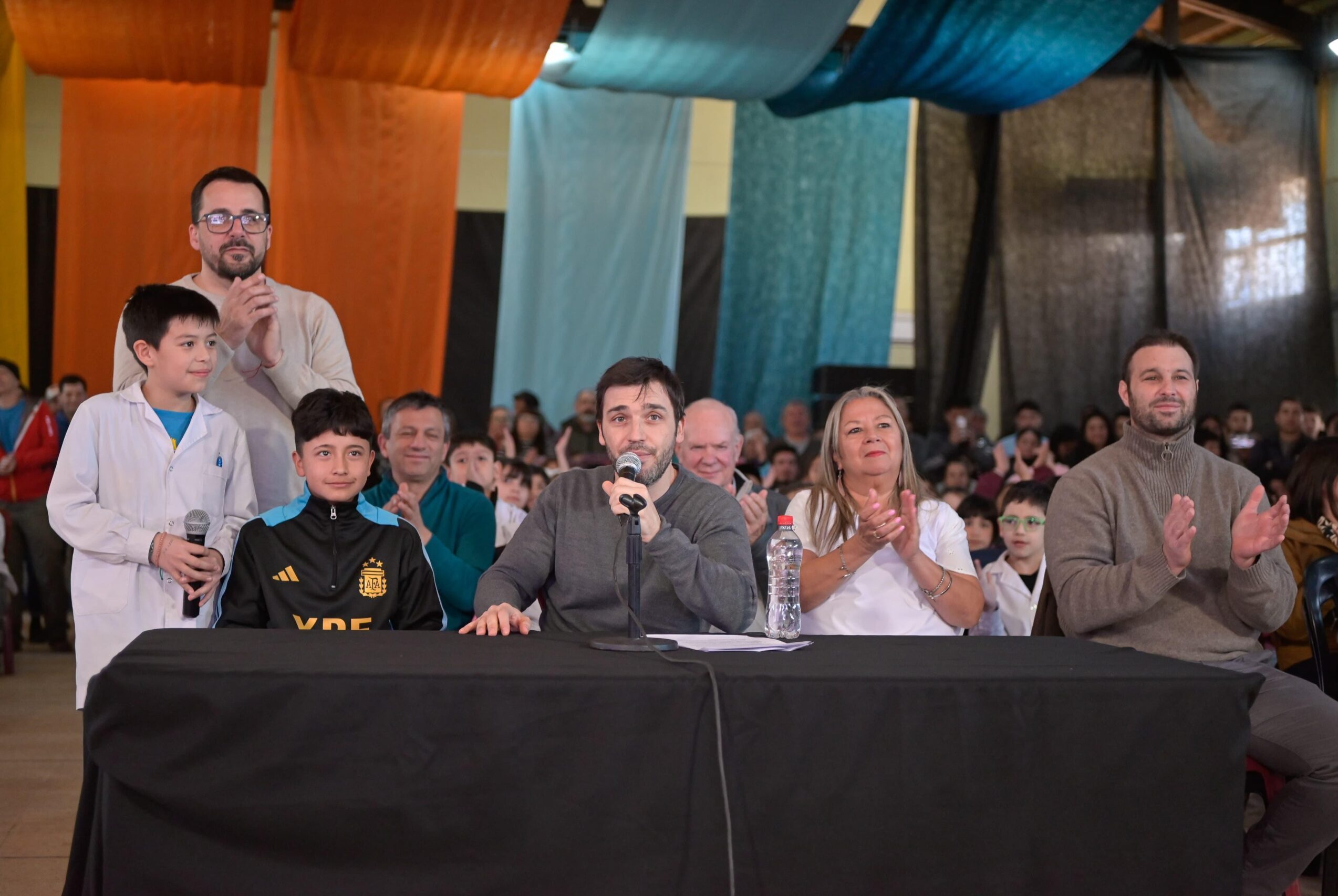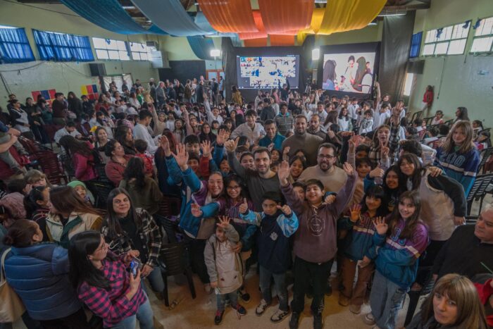 Desde un gimnasio totalmente colmado de alumnos eufóricos, familias y docentes, Torres se puso en contacto con todos los establecimientos educativos beneficiados, acompañados en cada oportunidad por funcionarios del Gobierno Provincial y por sus respectivos jefes comunales.